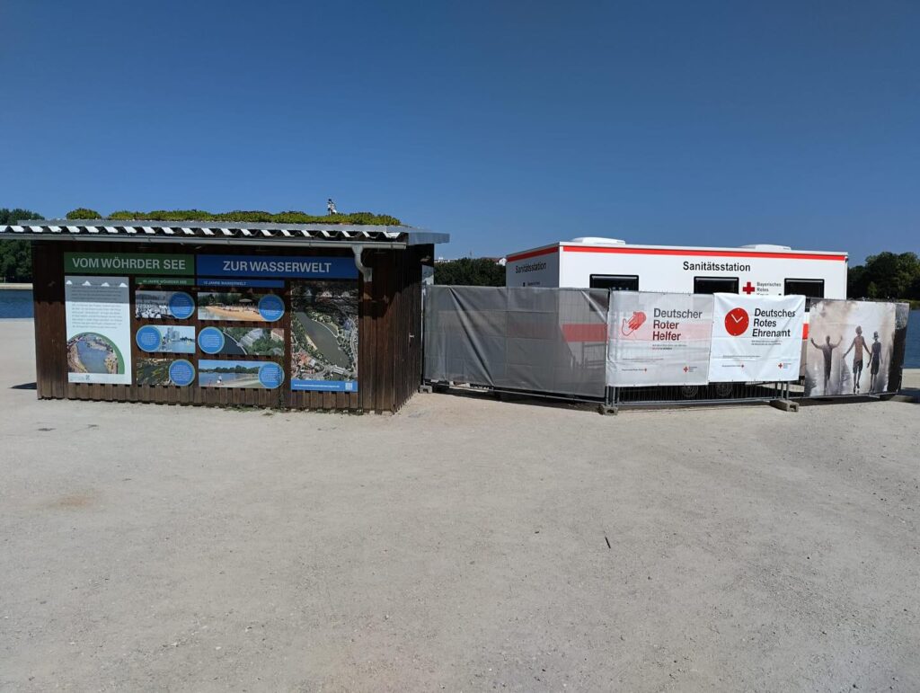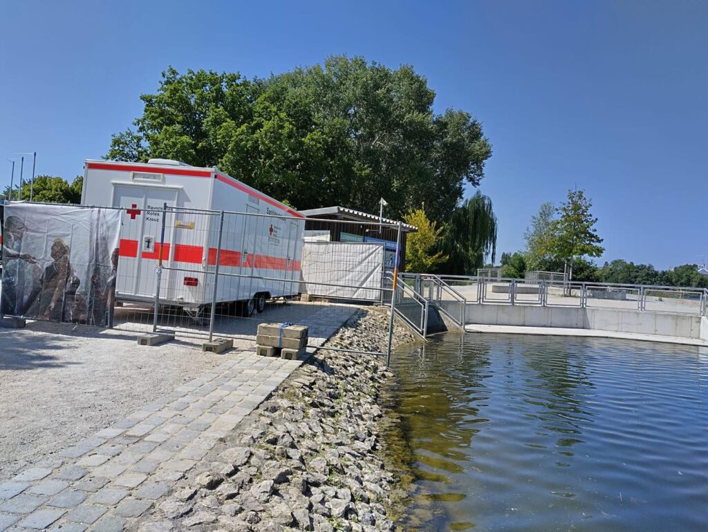 Ab Samstag werden wir für die Sicherheit am und im Wasser im Zentrum von Nürnberg sorgen: Unsere mobile Wachstation an der Norikusbucht ist mittlerweile eingerichtet und wartet auf unsere Dienste.